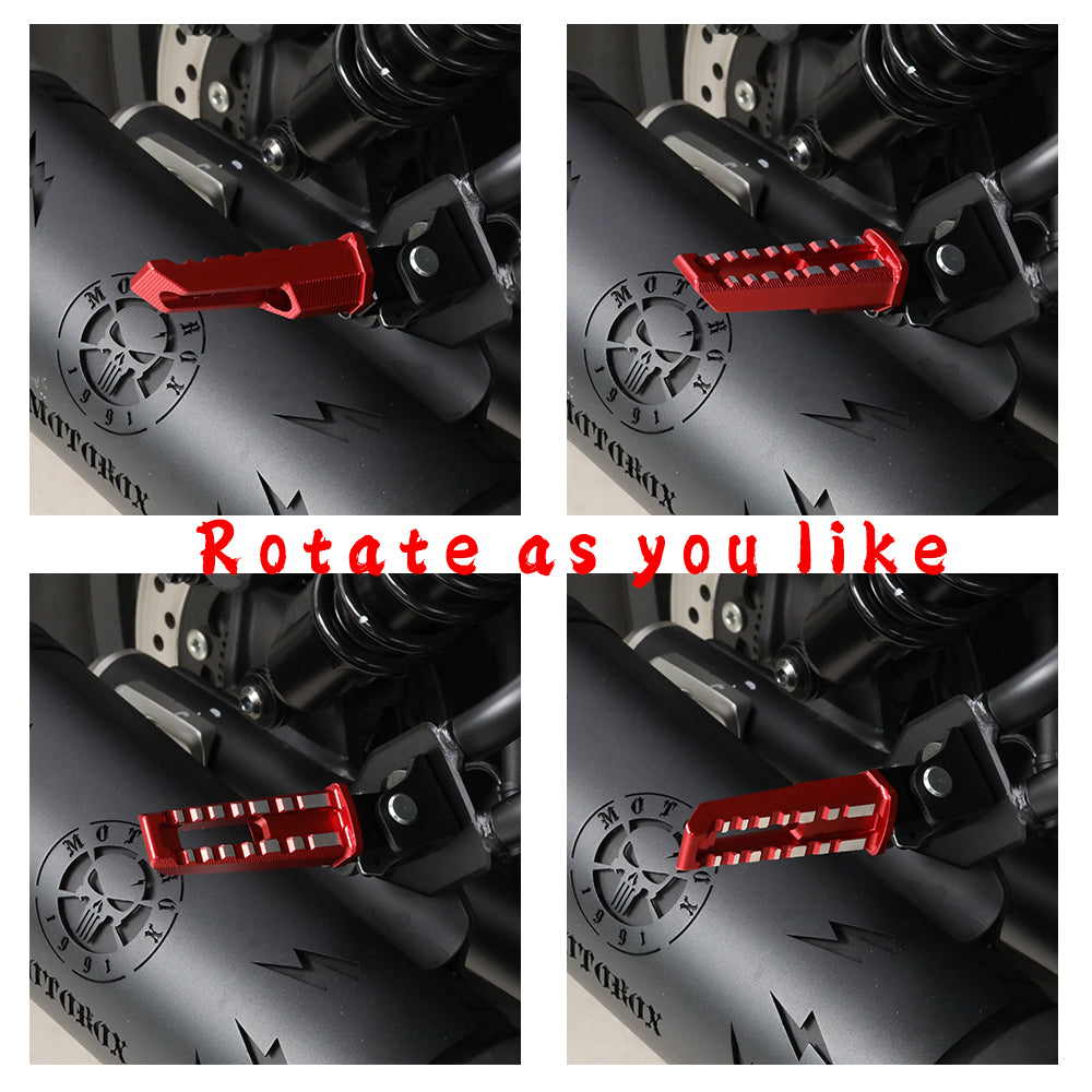 - Adjustable: 360° Rotating. The passenger footpeg can switch to any anger to make your feet comfortabl on it. Make your feet relax.